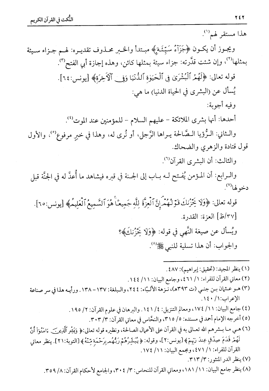والثاني: الرؤيا الصالحة يراها الرجل، أو ترى له، وهذا في خبرس مرفوع، والأول قول قتادة والزهري والضحاك.