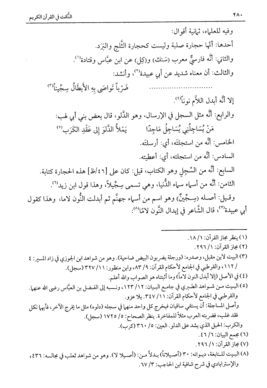 السابع: أنه من السجل وهو الكتاب، قيل: كان على هذه الحجارة كتابة.