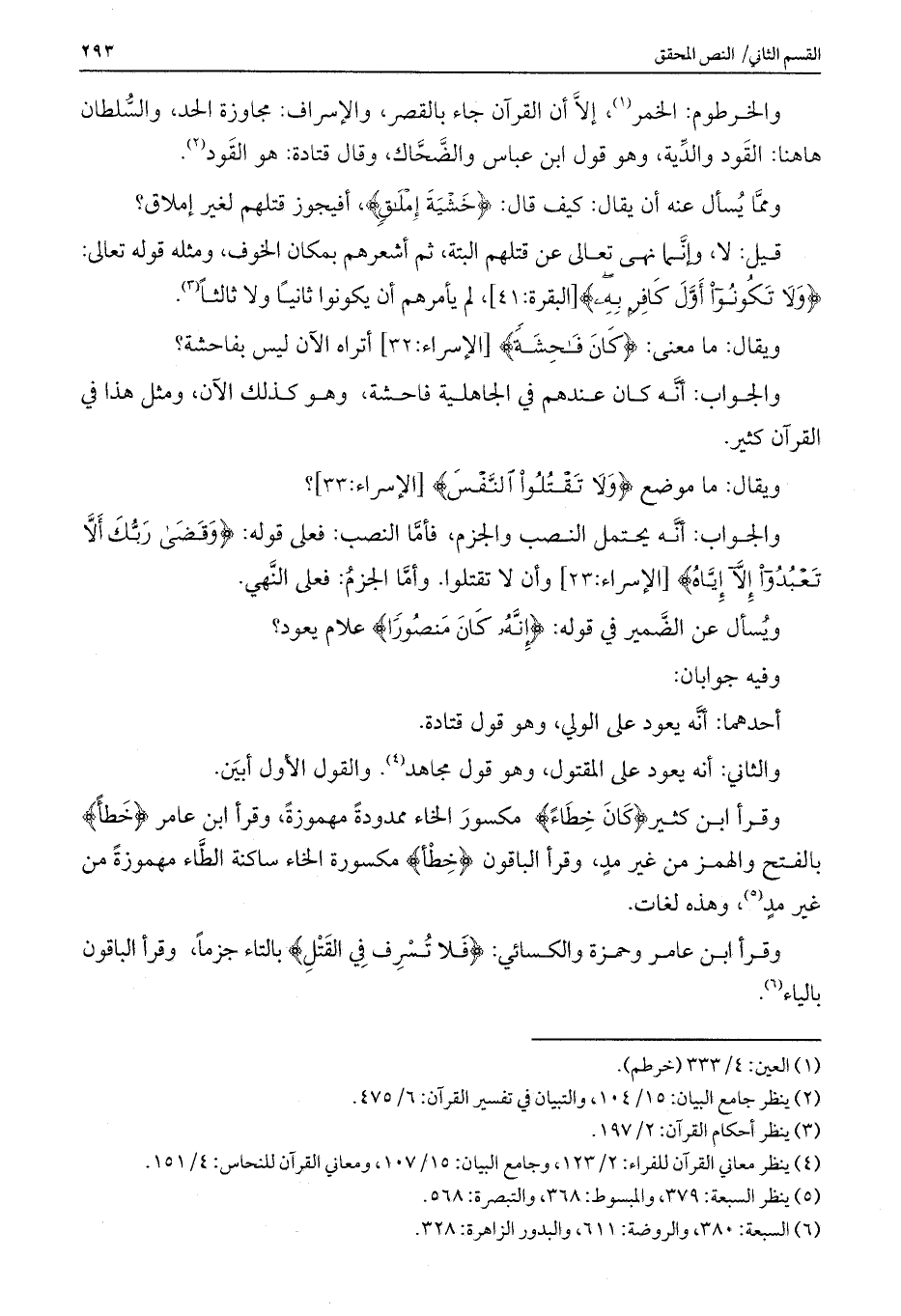 والخرطوم: الخمر، إلا أن القرآن جاء بالقصر، والإسراف: مجاوزة الحد، والسلطان هاهنا: القود والدية، وهو وقل ابن عباس والضحاك، وقال قتادة: هو القود.