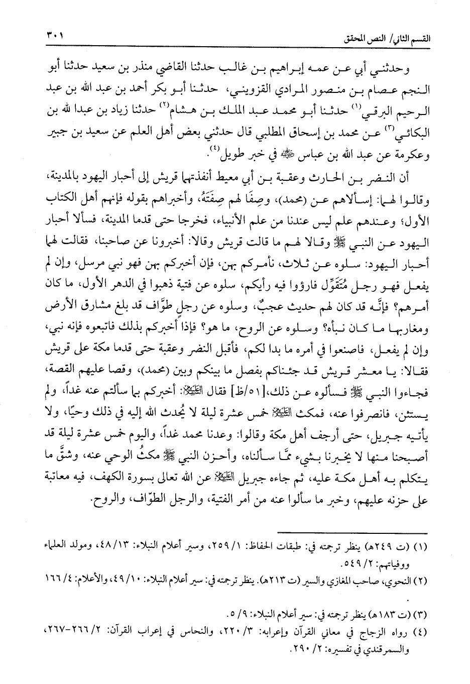 وحدثني أبي عن عمه إبراهيم بن غالب حدثنا القاضي منذر بن سعيد حدثنا أبو النجم عصام بن منصور المرادي القزويني، حدثنا أبو بكر بن عبد الله بن عبد الرحيم البرقي حدثنا أبو محمد عبد الملك بن هشام حدثنا زياد بن عبد الله بن البكائي عن محمد بن إسحاق المطلبي قال حدثني بعض أهل العلم عن سعيد بن جبير وعكرمة عن عبد الله بن عباس - رضي الله عنه - في خبر طويل.