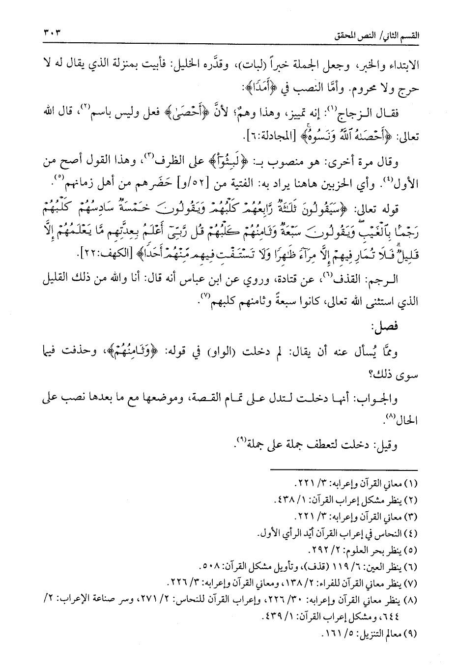ومما يسأل عنه أن يقال: لم دخلت (الواو) في قوله: {وَثَامِنُهُمْ} ، وحذفت فيما سوى ذلك؟