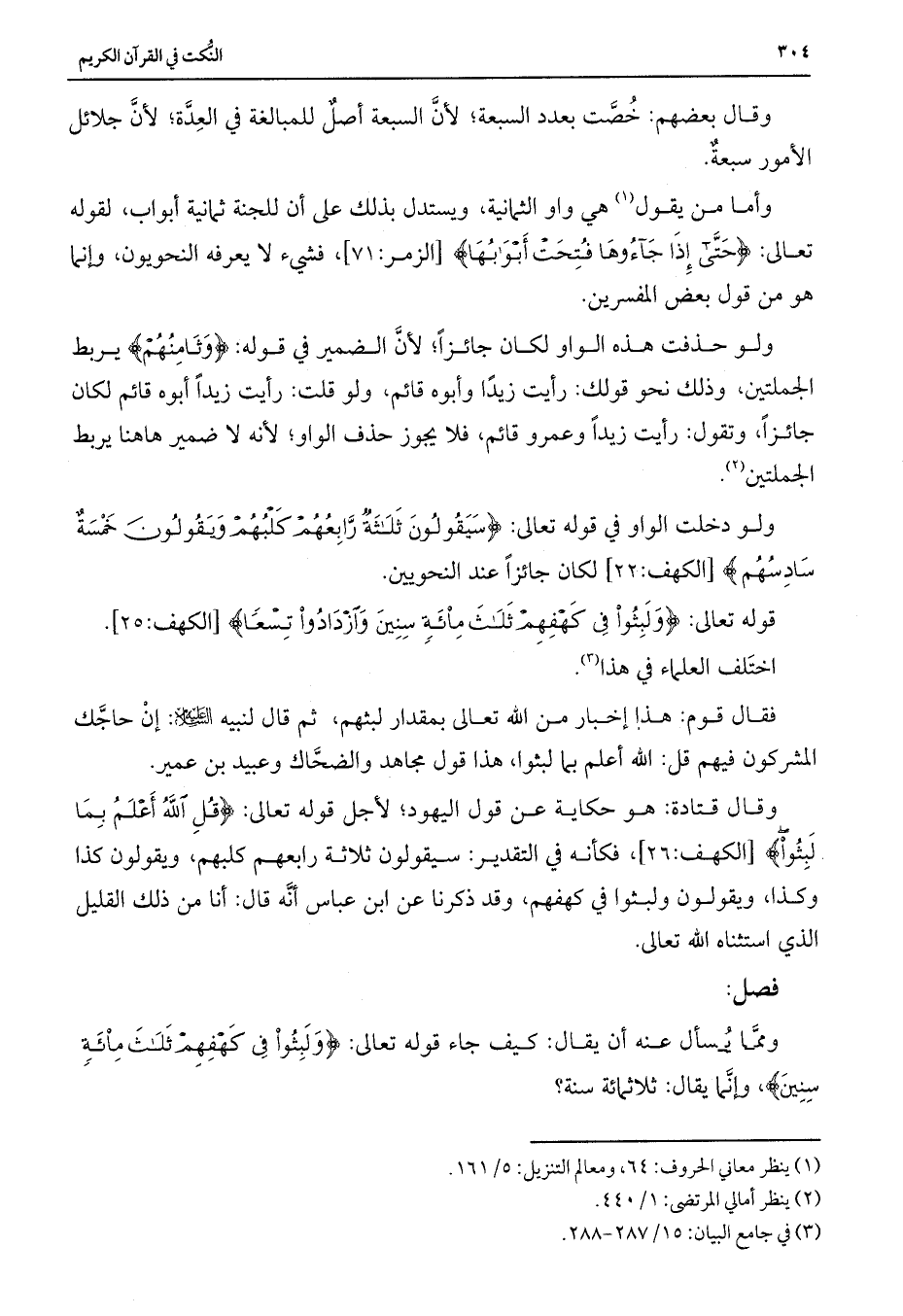 ومما يسأل عنه أن يقال: كيف جاء قوله تعالى: {وَلَبِثُوا فِي كَهْفِهِمْ ثَلَاثَ مِائَةٍ سِنِينَ} ، وإنما يقال: ثلاثمائة سنة؟