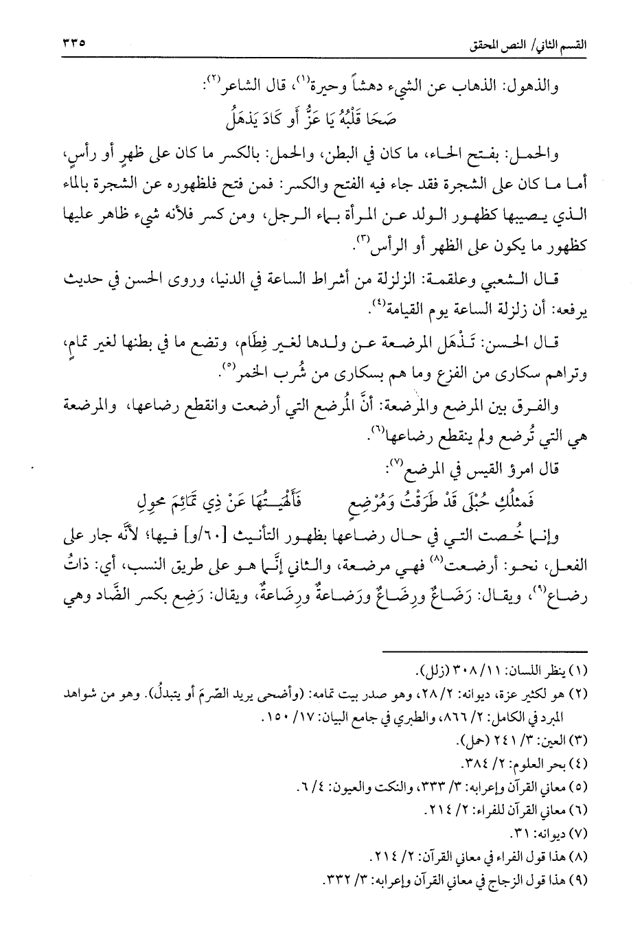 قال الشعبي وعلقمة: الزلزلة من أشراط الساعة في الدنيا، وروى الحسن في حديث يرفعه: أن زلزلة الساعة يوم القيامة.