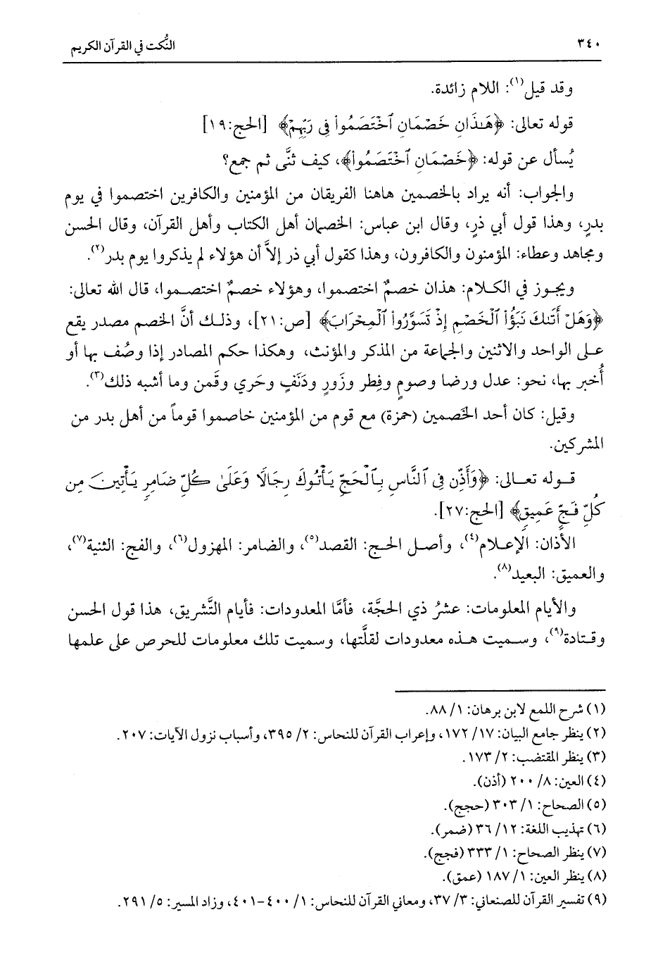 الأذان: الإعلام، وأصل الحج: القصد، والضامر: المهزول، والفج: الثنية، والعميق: البعيد.