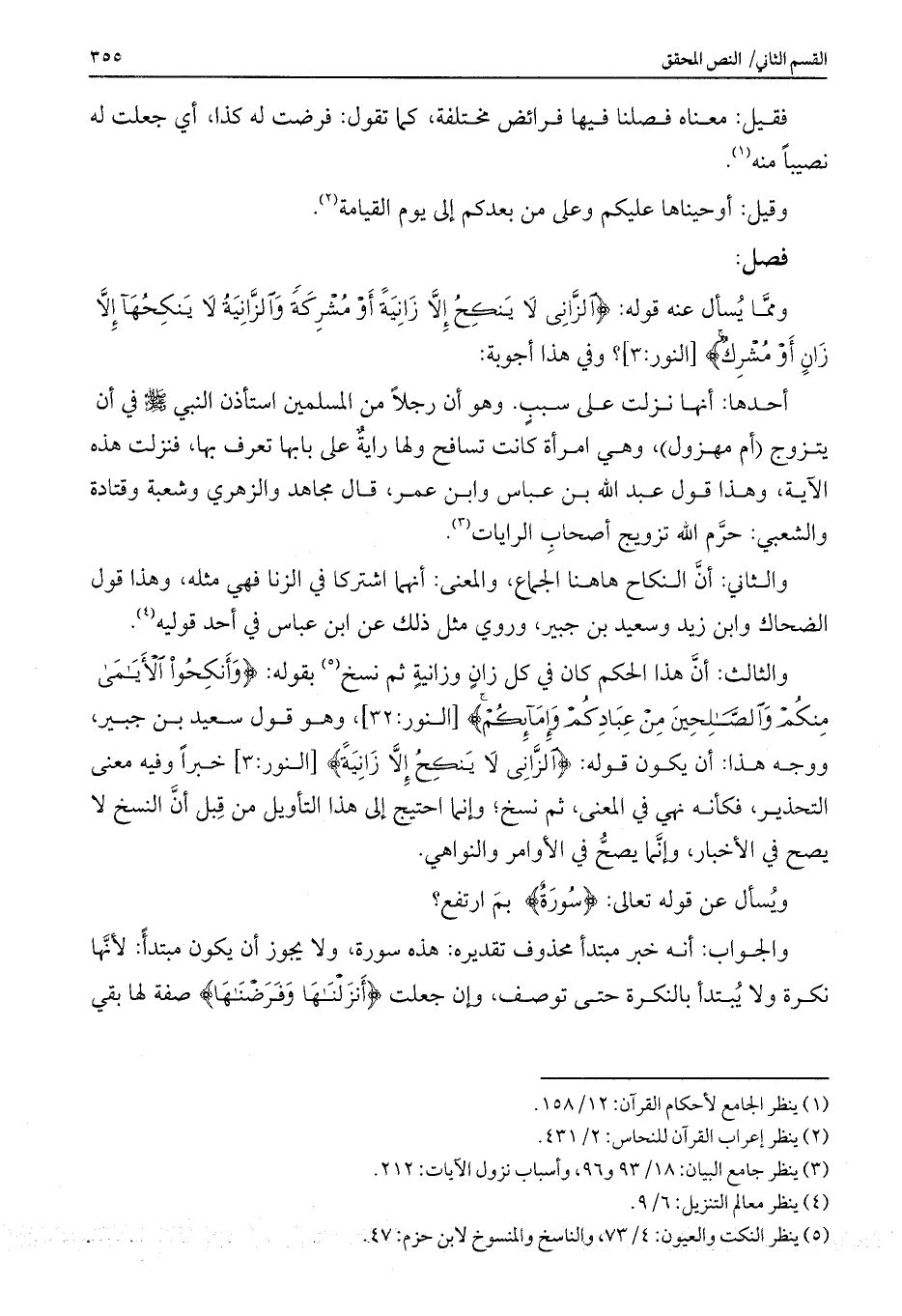 ومما يسأل عنه قوله: {الزَّانِي لَا يَنْكِحُ إِلَّا زَانِيَةً أَوْ مُشْرِكَةً وَالزَّانِيَةُ لَا يَنْكِحُهَا إِلَّا زَانٍ أَوْ مُشْرِكٌ} [النور: 3] ؟ وفي هذا أجوبة: