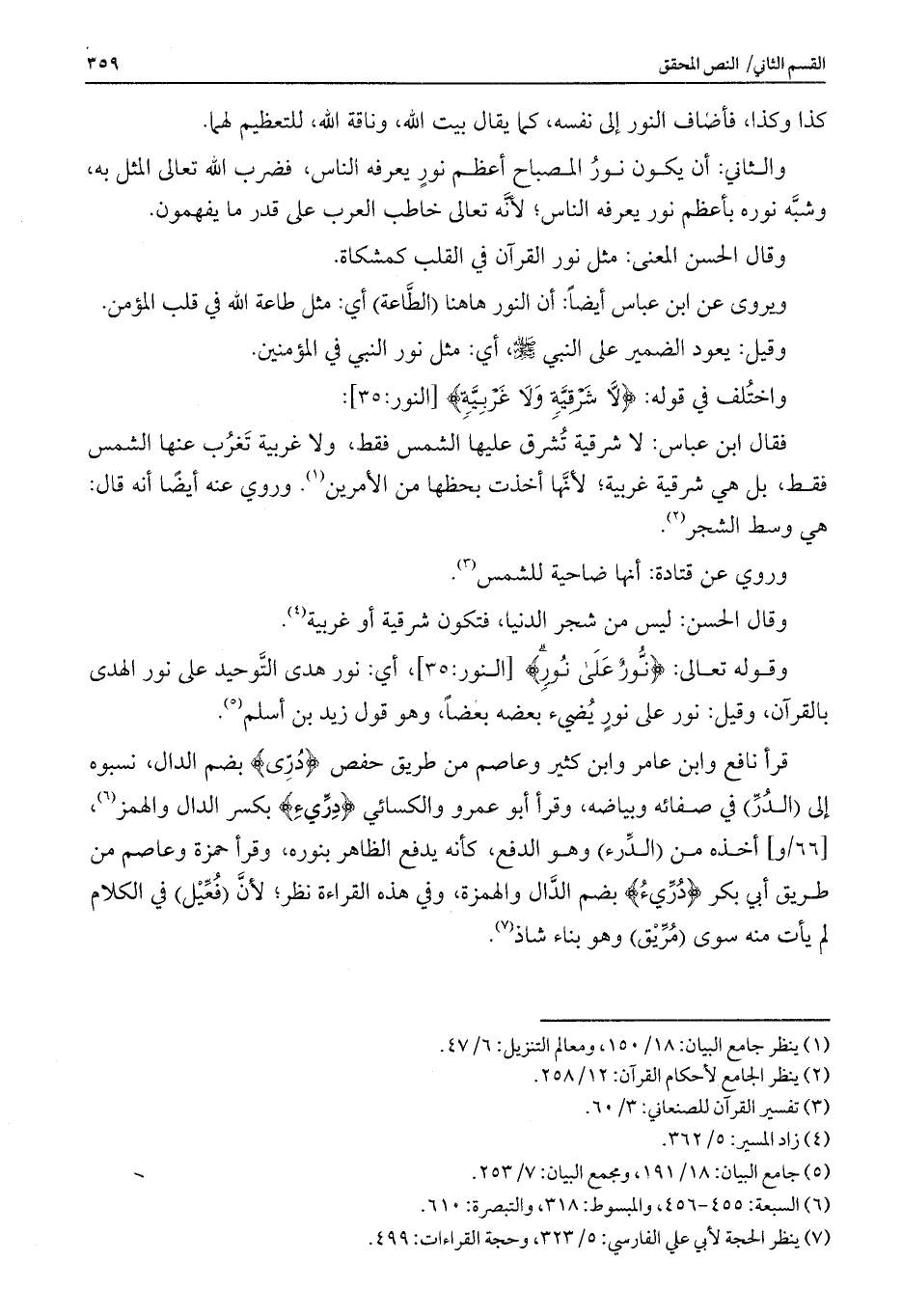 وقيل: يعود الضمير على النبي - صلى الله عليه وسلم -، أي: مثل نور النبي في المؤمنين.