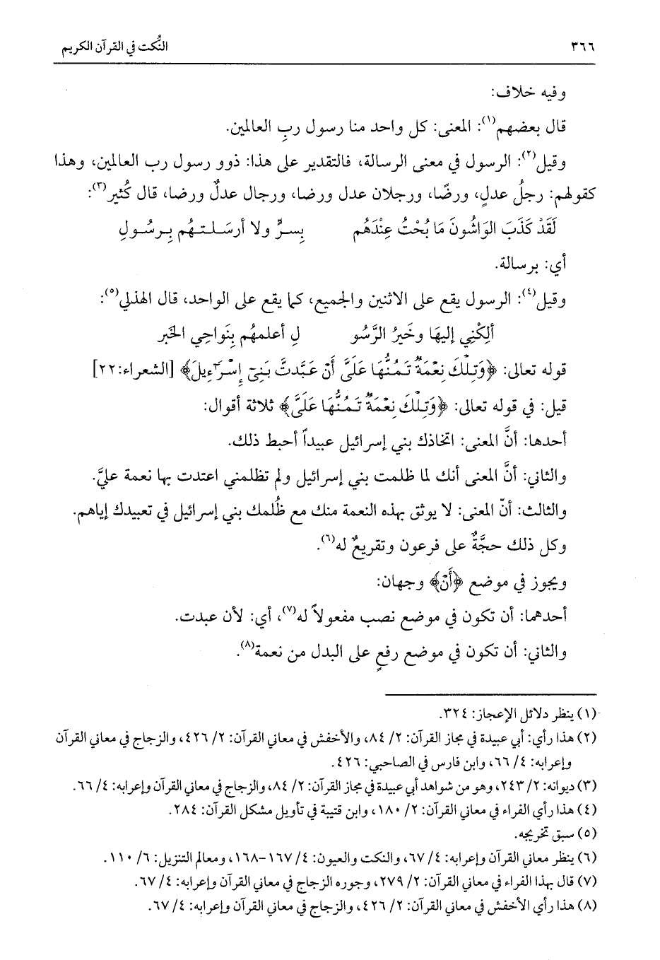 وقيل: الرسول في معنى الرسالة، فالتقدير على هذا ذوو رسول رب العالمين، وهذا كقولهم: رجل عدل، ورضا، ورجلان عدل ورضا، ورجال عدل ورضا، قال كثير: