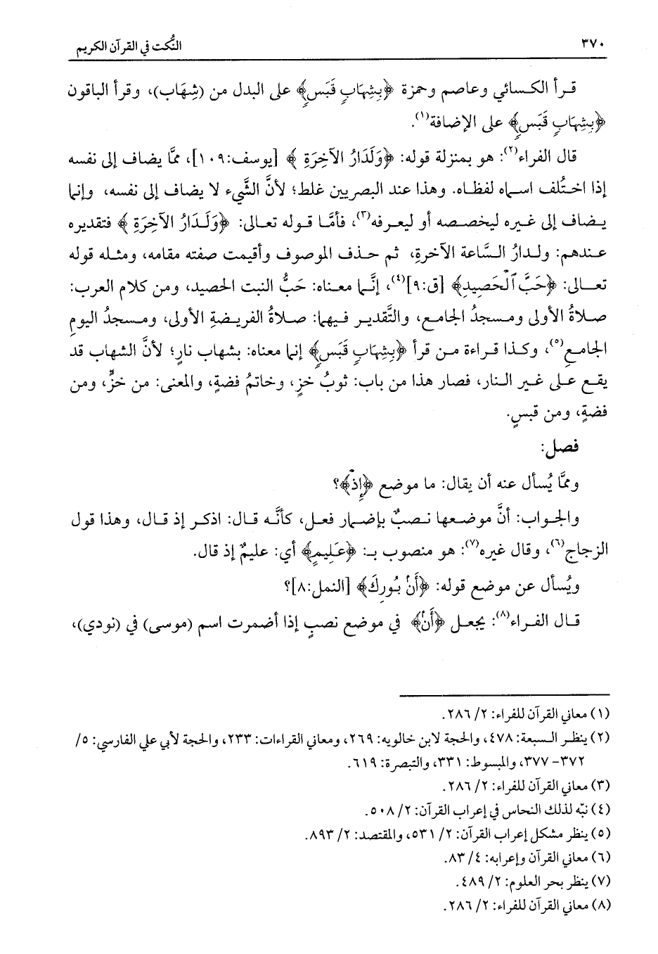 ويسأل عن موضع قوله: {أَنْ بُورِكَ} [النمل: 8] ؟