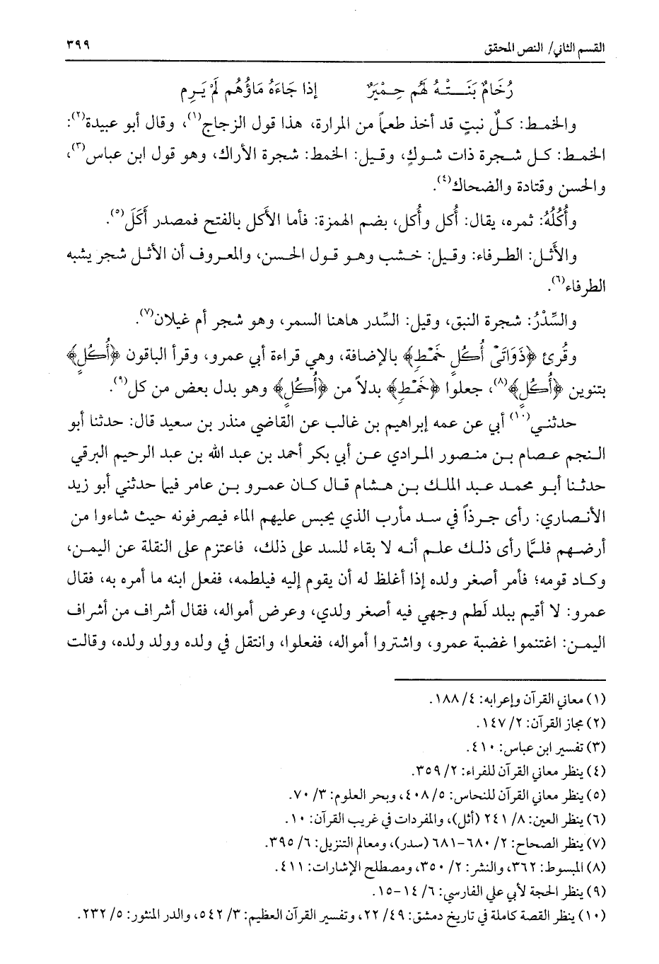 الخمط: كل شجرة ذات شوك، وقيل: الخمط: شجرة الأراك، وهو قول ابن عباس، والحسن وقتادة والضحاك.
