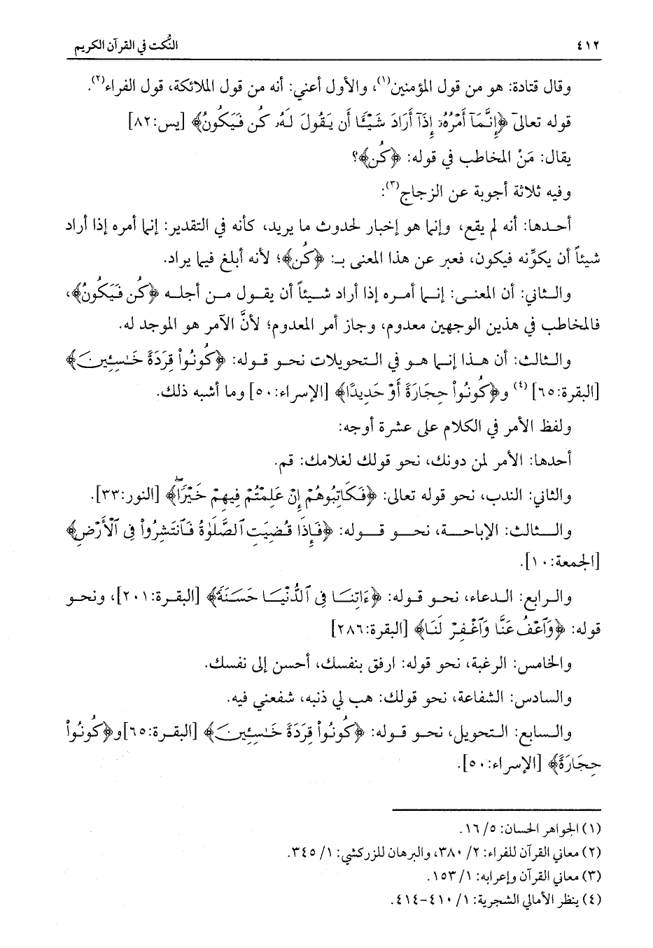 والثالث: أن هذا إنما هو في التحويلات نحو قوله: {كُونُوا قِرَدَةً خَاسِئِينَ} [البقرة: 65] و {كُونُوا حِجَارَةً أَوْ حَدِيدًا} [الإسراء: 50] وما أشبه ذلك.