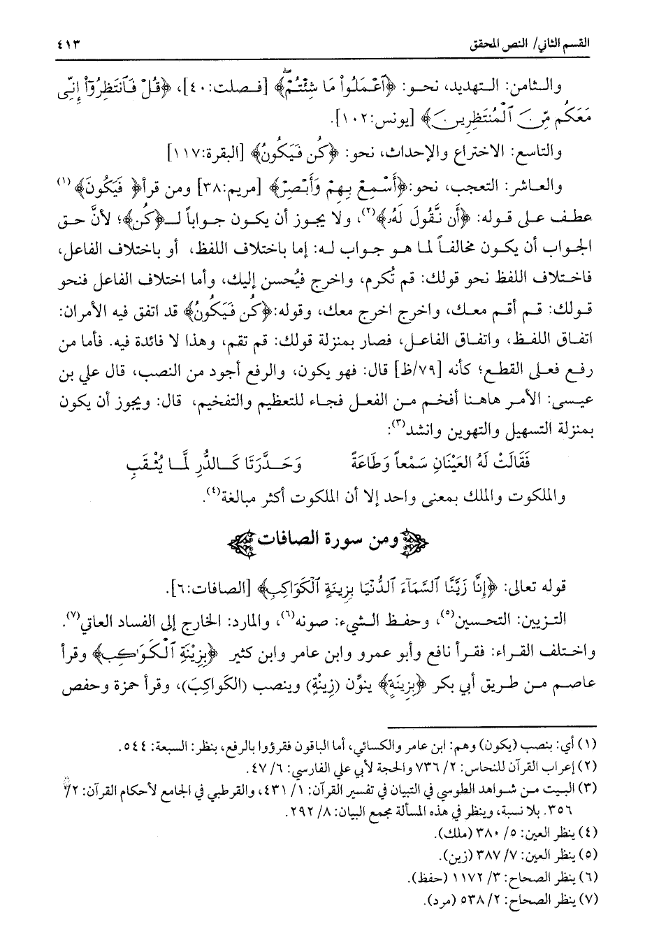 التزيين: التحسين، وحفظ الشيء: صونه، والمارد: الخارج إلى الفساد العاتي. واختلف القراء فقرأ نافع وأبو عمرو وابن عامر وابن كثير {بِزِينَةٍ الْكَوَاكِبِ} وقرأ عاصم من طريق أبي بكر {بِزِينَةِ} ينون (زينة) وينصب (الكواكب) ، وقرأ حمزة وحفص