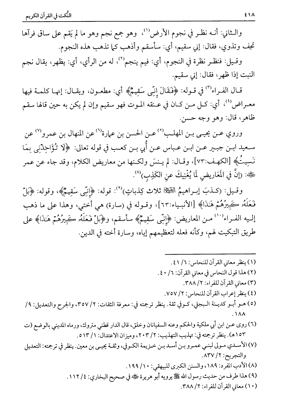 قال الفراء في قوله: {فَقَالَ إِنِّي سَقِيمٌ} أي: مطعون، ويقال: إنها كلمة فيها معراض، أي: كل من كان في عنقه الموت فهو سقيم وإن لم يكن به حين قالها سقم ظاهر، قال: وهو وجه حسن.