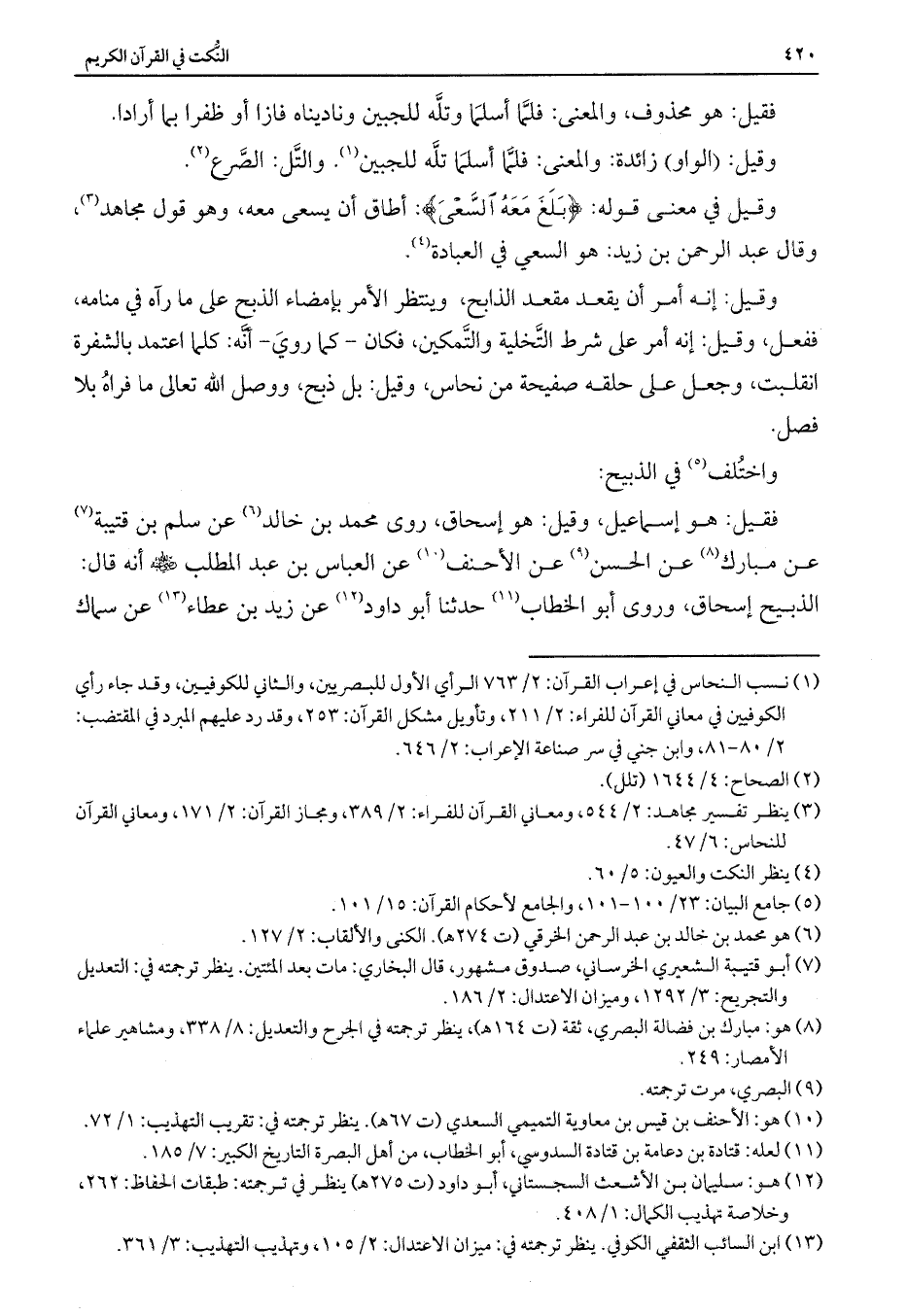 فقيل: هو إسماعيل، وقيل: هو إسحاق، روى محمد بن خالد عن سلم بن قتيبة عن مبارك عن الحسن عن الأحنف عن العباس بن عبد المطلب - رضي الله عنه - أنه قال: الذبيح إسحاق، وروى أبو الخطاب حدثنا أبو داود عن زيد عن عطاء عن سماك