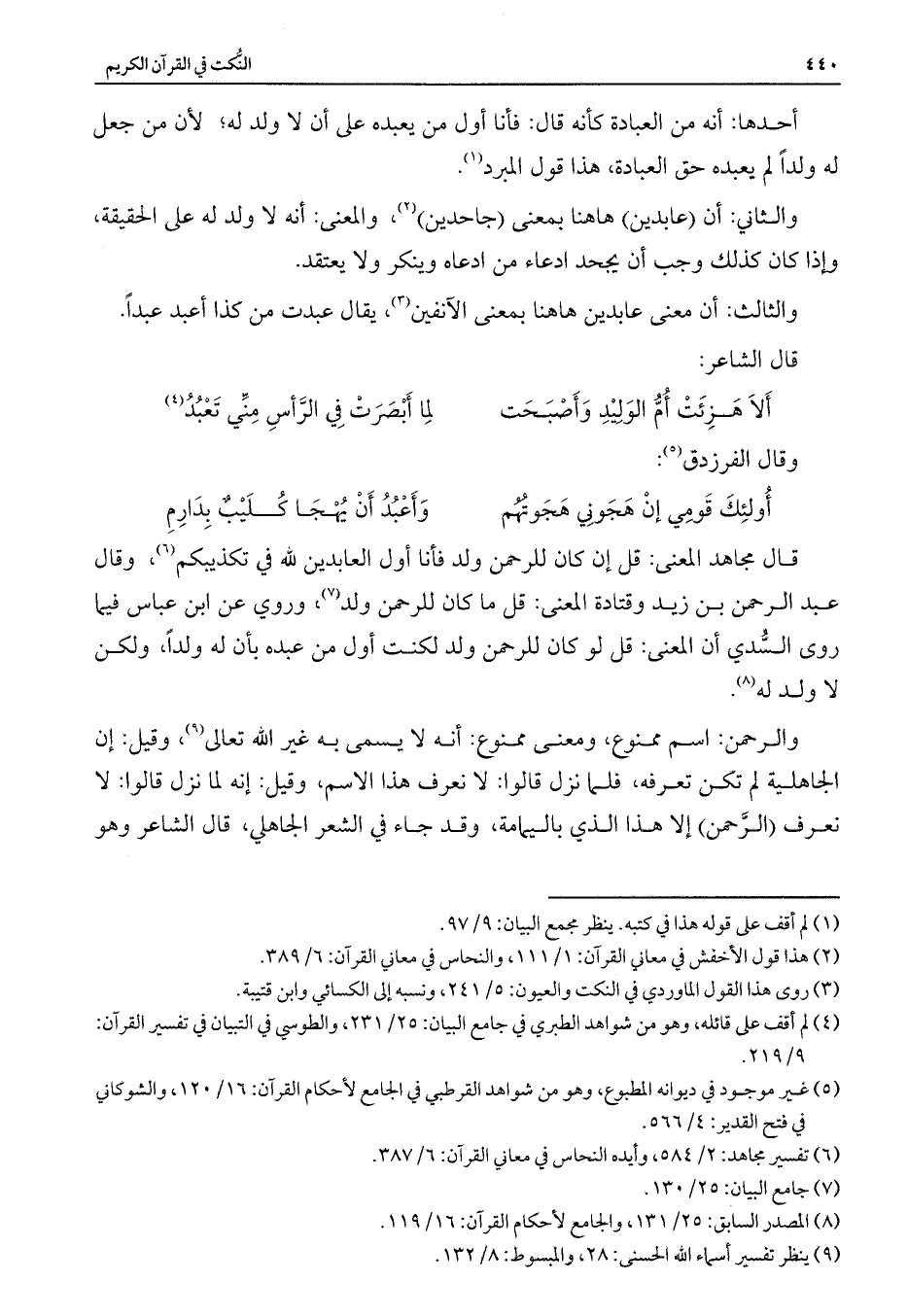 والثاني: أن (عابدين) هاهنا بمعنى (جاحدين) ، والمعنى: أنه لا ولد له على الحقيقة، وإذا كان كذلك وجب أن يجحد ادعاء من ادعاه وينكر ولا يعتقد.