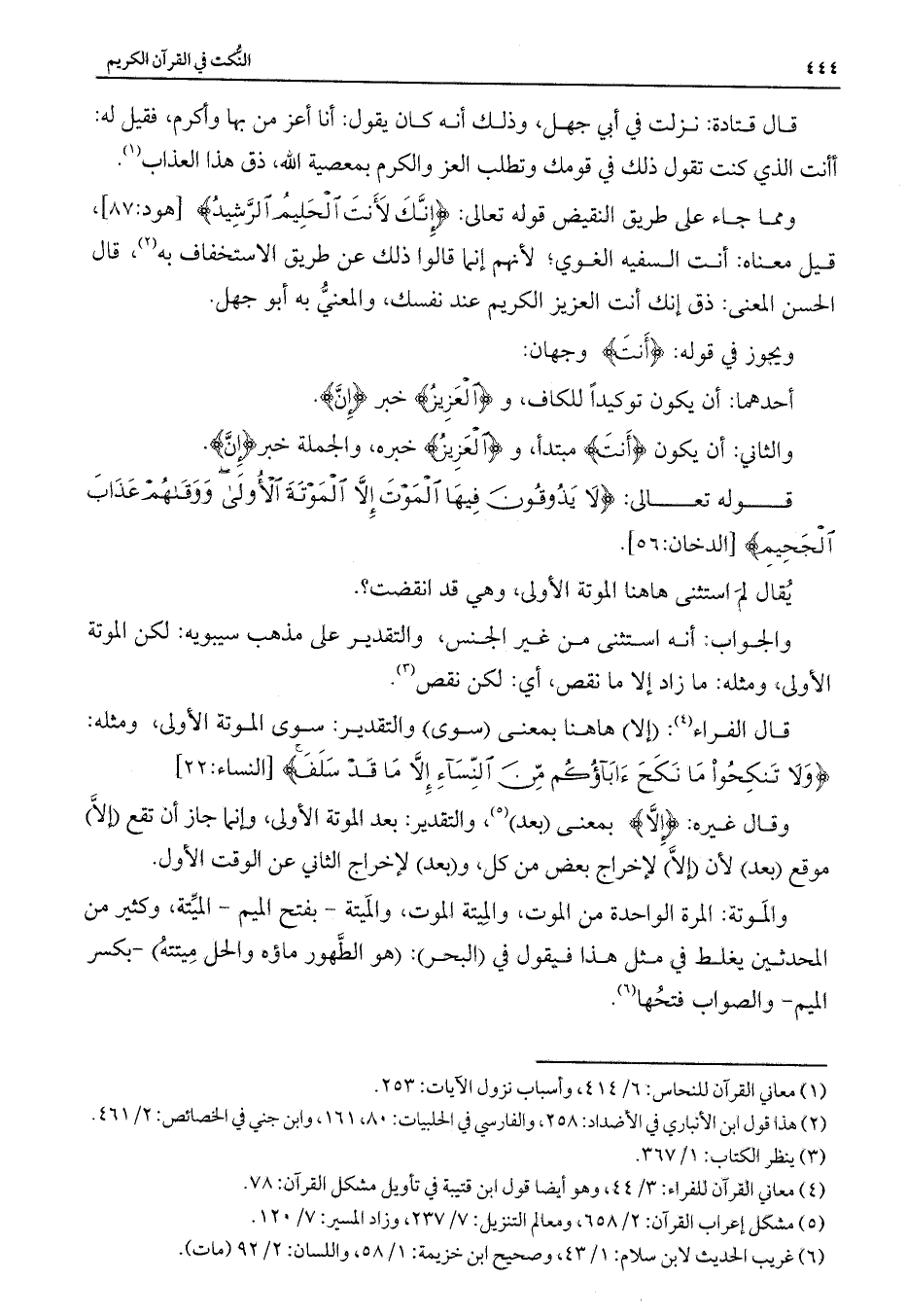 وقال غيره: {إِلَّا} بمعنى (بعد) ، والتقدير: بعد الموتة الأولى، وإنما جاز أن تقع (إلا) موقع (بعد) لأن (إلا) لإخراج بعض من كل، و (بعد) لإخراج الثاني عن الوقت الأول.