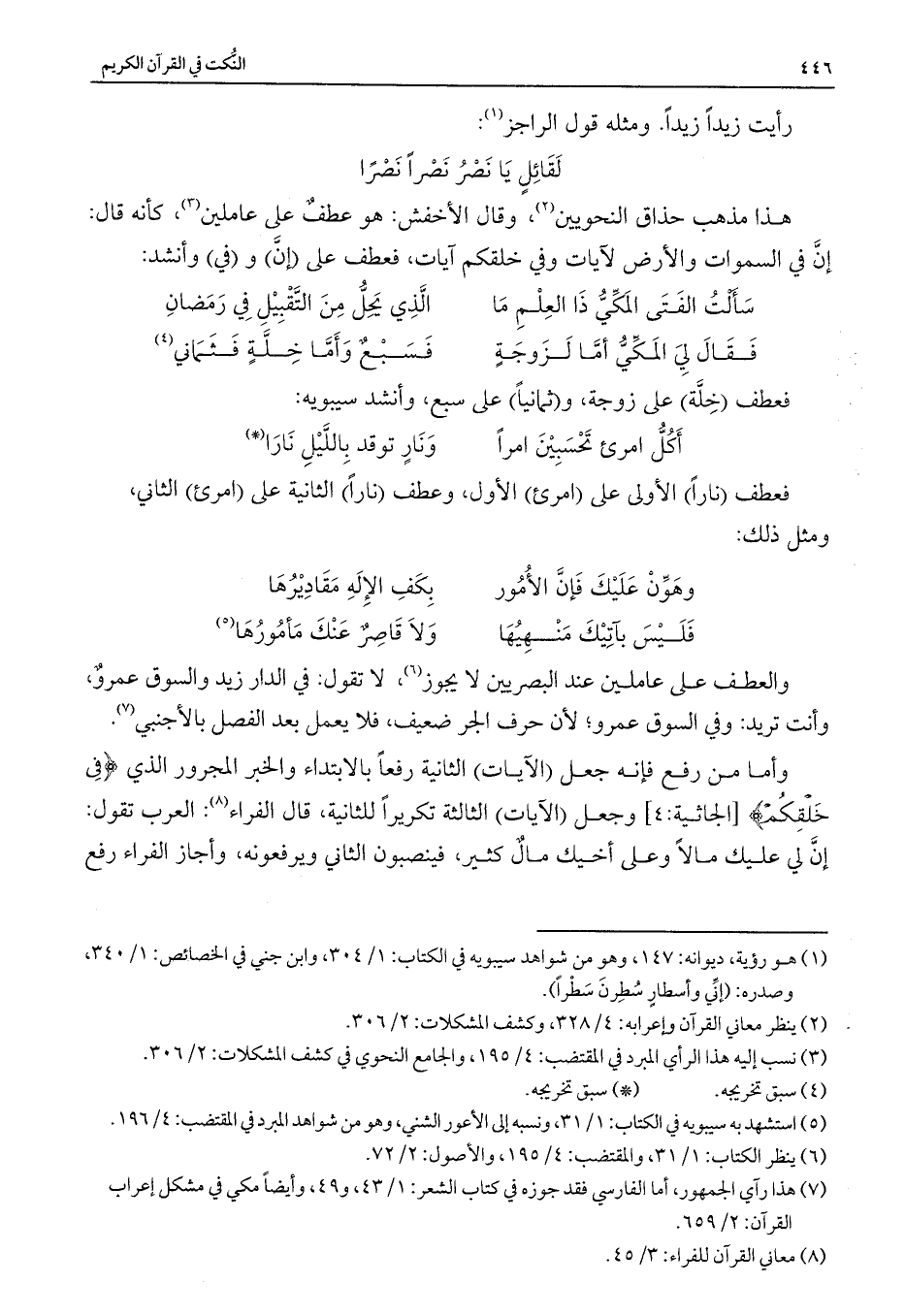 فعطف (ناراً) الأولى على (امرئ) الأول، وعطف (ناراً) الثانية على (امرئ) الثاني، ومثل ذلك: