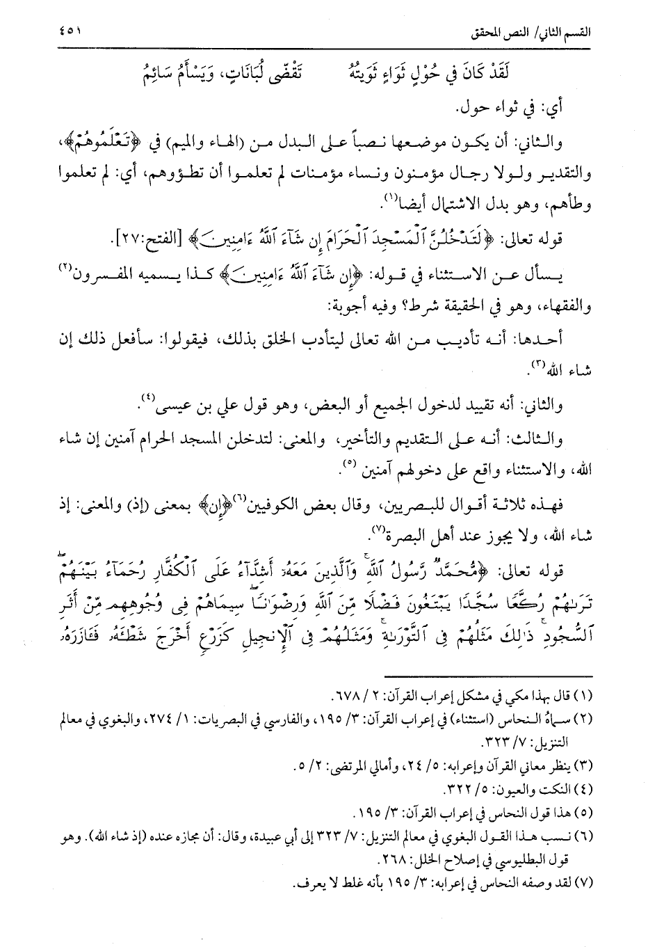 يسأل عن الاستثناء في قوله: {إِنْ شَاءَ اللَّهُ آمِنِينَ} كذا يسميه المفسرون والفقهاء، وهو في الحقيقة شرط؟ وفيه أجوبة: