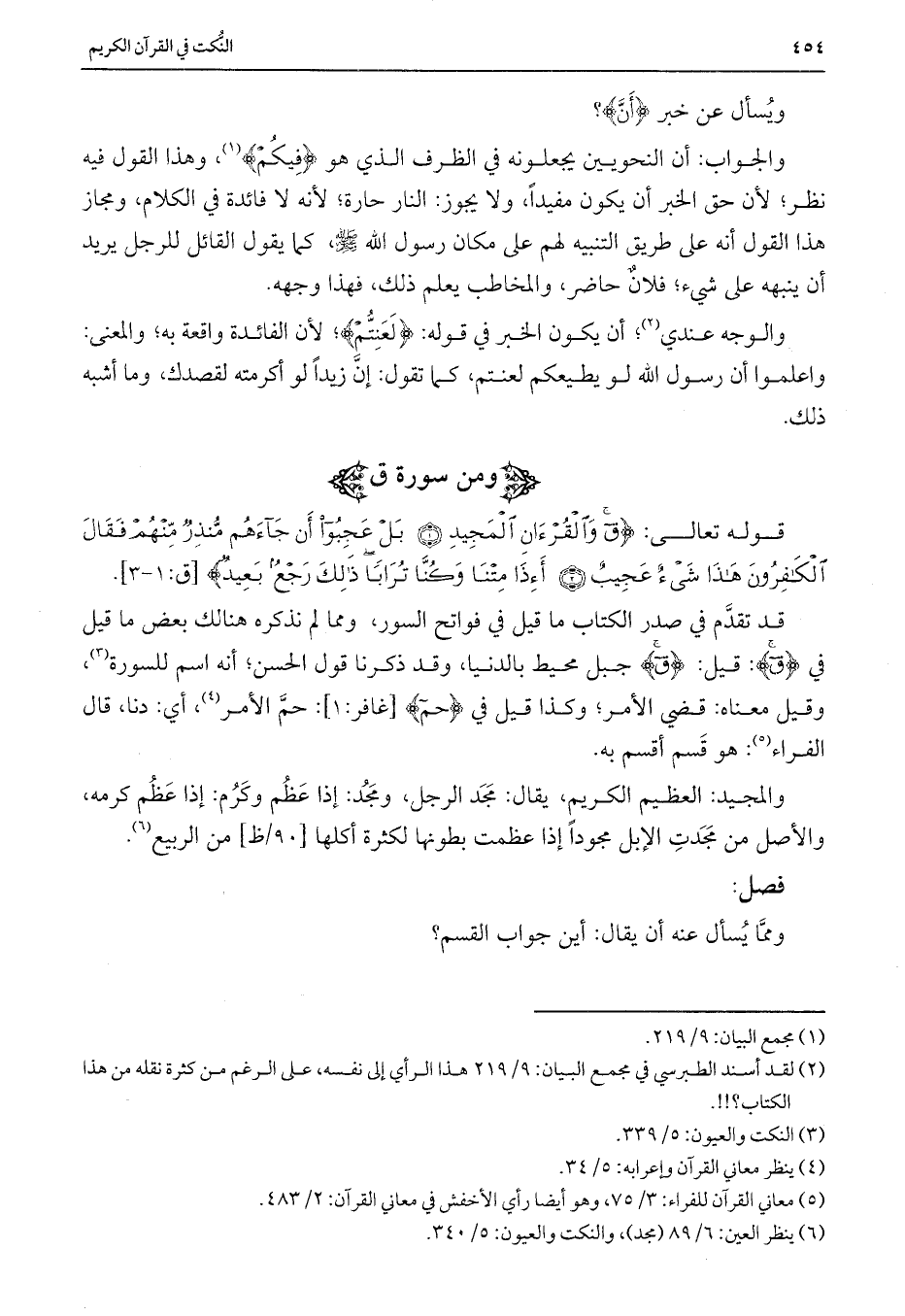قد تقدم في صدر الكتاب ما قيل في فواتح السور، ومما لم نذكره هنالك بعض ما قيل في {ق} : قيل: {ق} جبل محيط بالدنيا، وقد ذكرنا قول الحسن؛ أنه اسم للسورة، وقيل معناه: قضي الأمر؛ وكذا قيل في {حم} [غافر: 1] : حمَّ الأمر، أي: دنا، قال الفراء: هو قسم أقسم به.