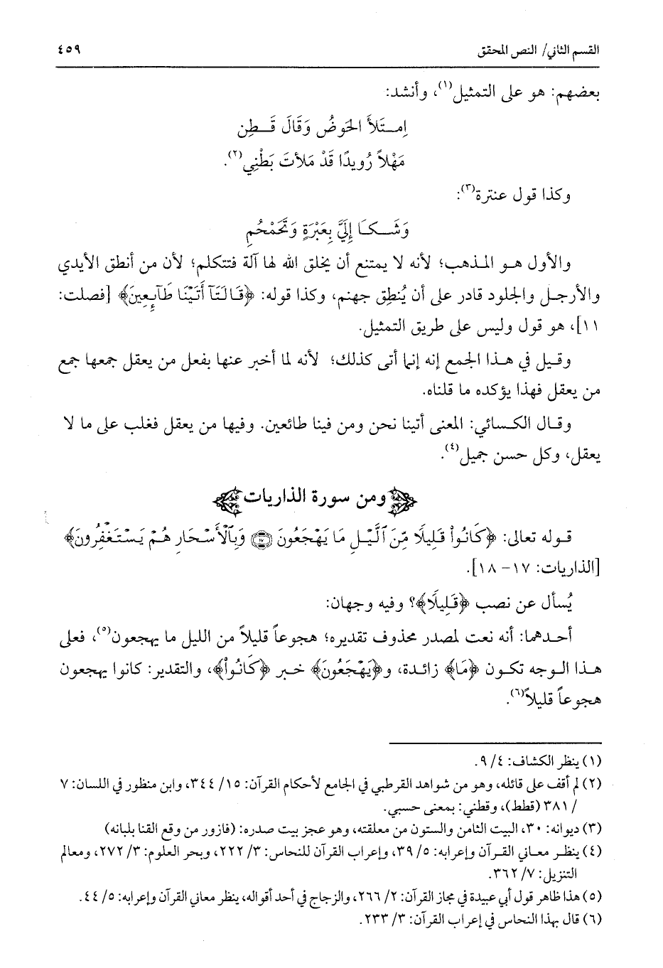 أحدهما: أنه نعت لمصدر محذوف تقديره؛ هجوعاً قليلاً من الليل ما يهجعون، فعلى هذا الوجه تكون {مَا} زائدة، و {يَهْجَعُونَ} خبر {كَانُوا} ، والتقدير: كانوا يهجعون هجوعاً قليلاً.