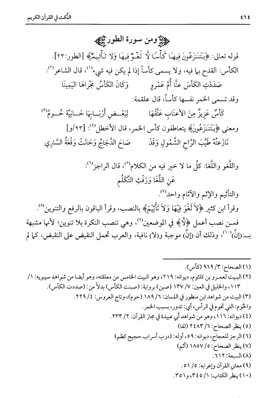 قوله تعالى: {يَتَنَازَعُونَ فِيهَا كَأْسًا لَا لَغْوٌ فِيهَا وَلَا تَأْثِيمٌ} [الطور: 23] .