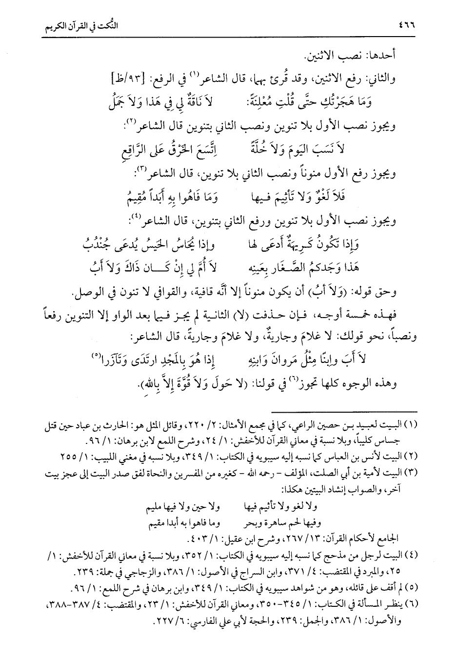 ويجوز نصب الأول بلا تنوين ونصب الثاني بتنوين قال الشاعر: