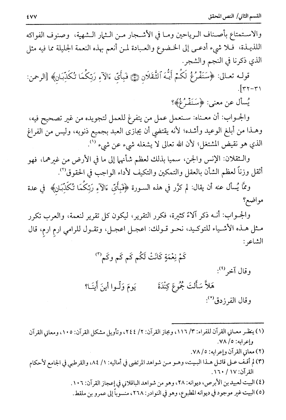 قوله تعالى: {سَنَفْرُغُ لَكُمْ أَيُّهَ الثَّقَلَانِ (31) فَبِأَيِّ آلَاءِ رَبِّكُمَا تُكَذِّبَانِ} [الرحمن: 31-32] .