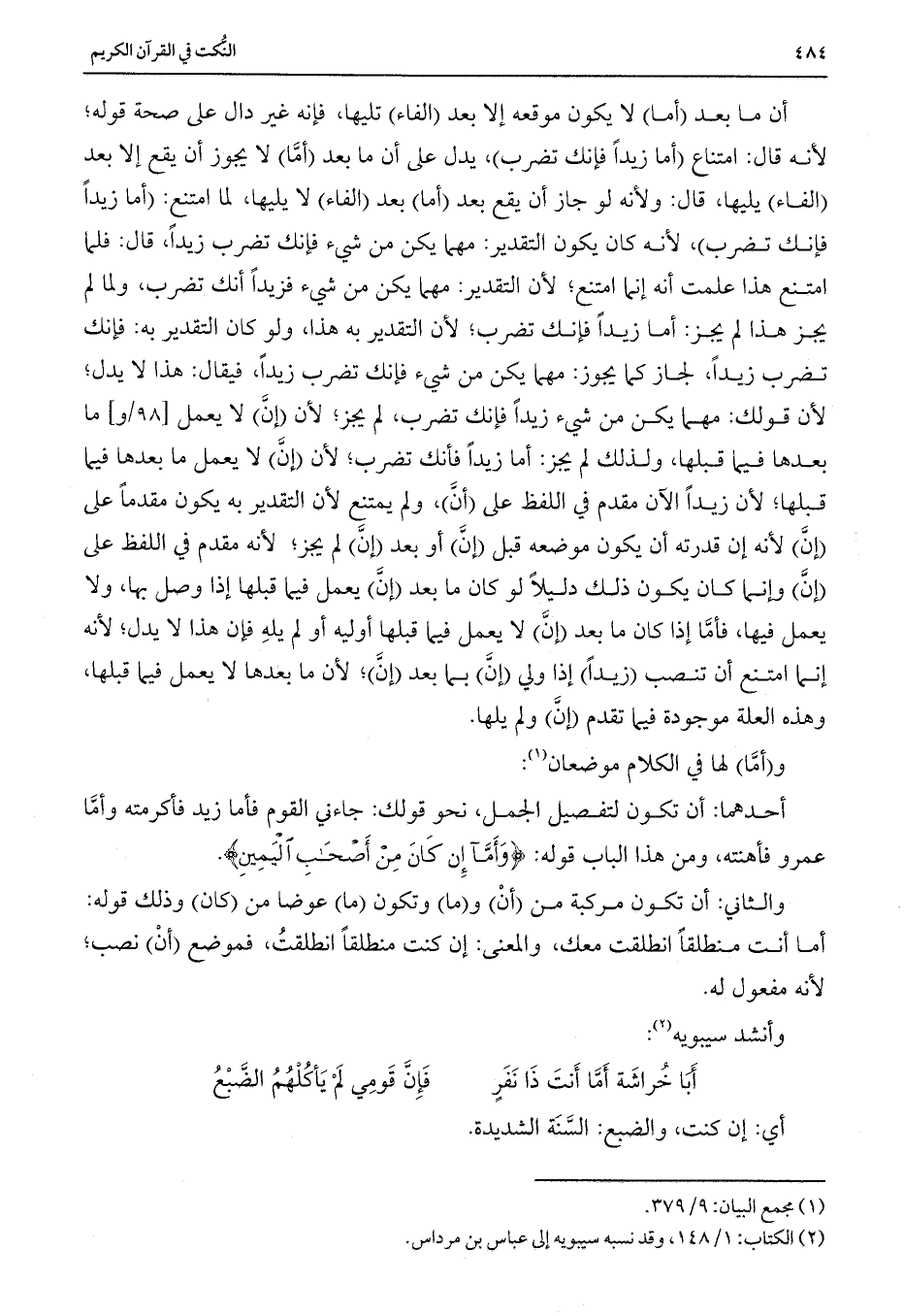 و (أما) لها في الكلام موضعان: