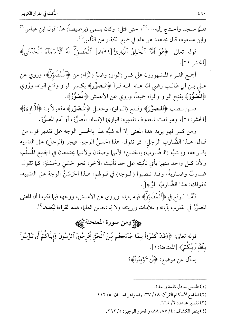 أجمع القراء المشهورون على كسر (الواو) وضم (الراء) من {الْمُصَوِّرُ} ، وروى عن علي بن أبي طالب رضي الله عنه أنه قرأ {الْمُصَوِّرُ} بكسر الواو وفتح الراء، وروي {الْمُصَوِّرُ} بفتح الواو والراء جميعاً، وروي عن الأعمش {الْمُصَوِّرُ} .