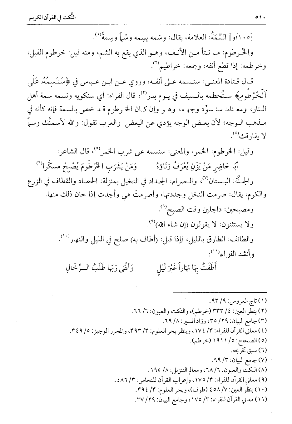 قال قتادة المعنى: سنسمه على أنفه، وروي عن ابن عباس في {سَنَسِمُهُ عَلَى الْخُرْطُومِ} سنحطمه بالسيف في يوم بدر، قال الفراء: أي سنكويه ونسمه سمة أهل النار، ومعناه: سنسود وجهه، وهو وإن كان الخرطوم قد خص بالسمة فإنه كأنه في مذهب الوجه؛ لأن بعض الوجه يؤدي عن البعض والعرب تقول: والله لأسمنك وسماً لا يفارقك.