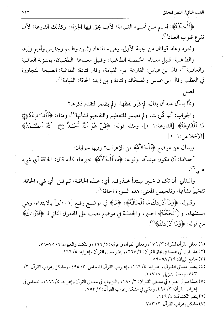 ويسأل عن موضع {الْحَاقَّةُ} من الإعراب؟ وفيها جوابان: