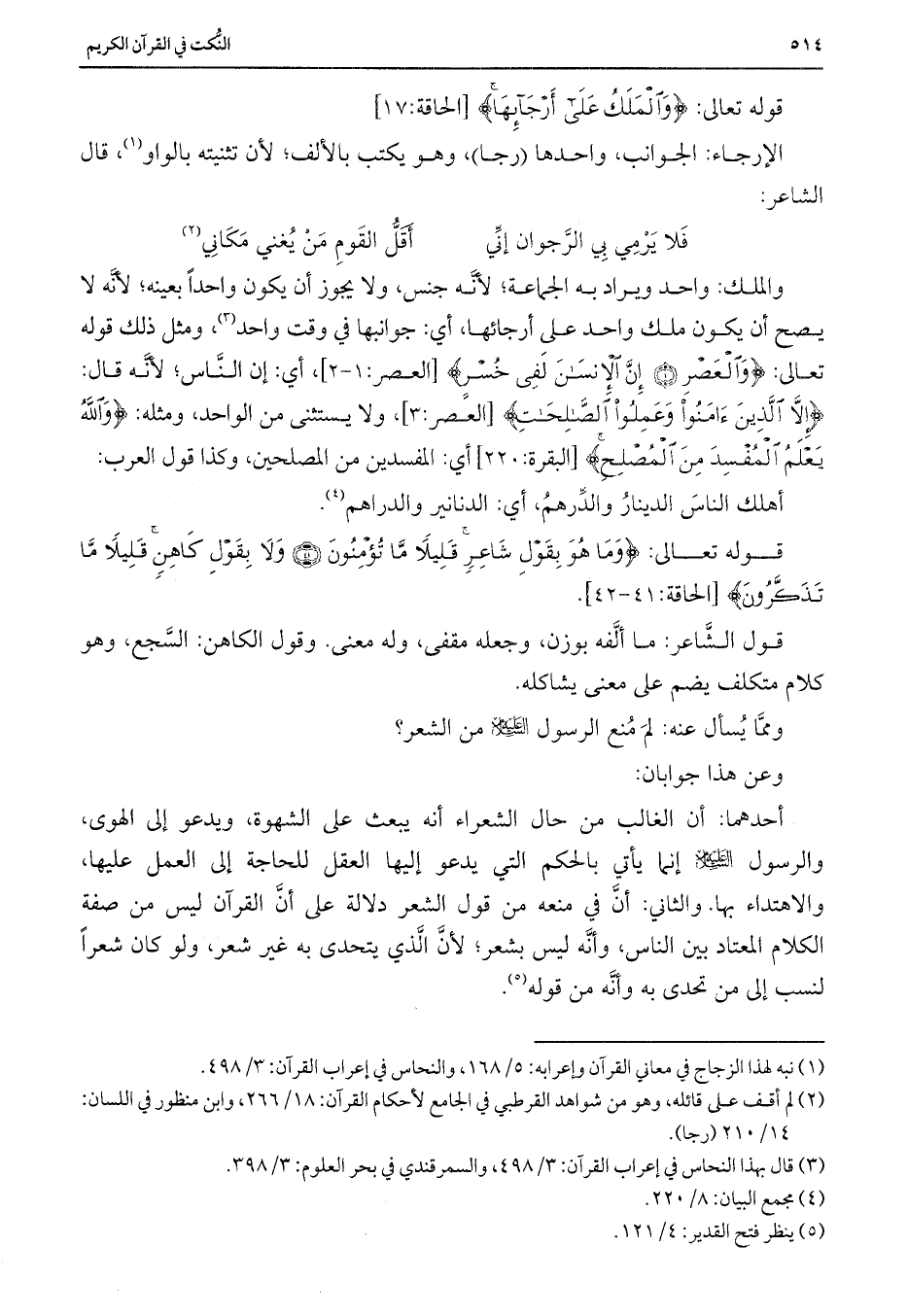 والملك: واحد ويراد به الجماعة؛ لأنه جنس، ولا يجوز أن يكون واحداً بعينه؛ لأنه لا يصح أن يكون ملك واحد على أرجائها، أي: جوانبها في وقت واحد، ومثل ذلك قوله تعالى: {وَالْعَصْرِ (1) إِنَّ الْإِنْسَانَ لَفِي خُسْرٍ} [العصر: 1-2] ، أي: إن الناس؛ لأنه قال: {إِلَّا الَّذِينَ آمَنُوا وَعَمِلُوا الصَّالِحَاتِ} [العصر: 3] ، ولا يستثنى من الواحد، ومثله: {وَاللَّهُ يَعْلَمُ الْمُفْسِدَ مِنَ الْمُصْلِحِ} [البقرة: 220] أي: المفسدين من المصلحين، وكذا قول العرب: