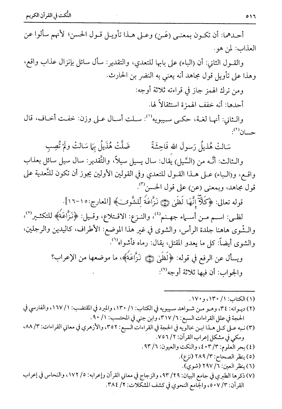 والثالث: أنه من (السيل) يقال: سال يسيل سيلاً، والتقدير: سال سيل سائل بعذاب واقع، و (الباء) على هذا القول للتعدي وفي القولين الأولين يجوز أن تكون للتعدية على قول مجاهد، وبمعنى (عن) على قول الحسن.