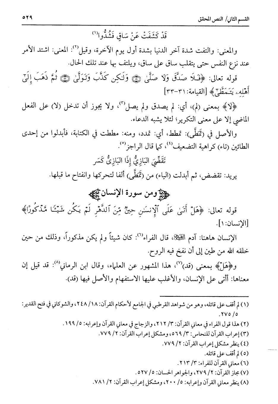 و {هَلْ} بمعنى (قد) ، هذا المشهور عن العلماء، وقال ابن الرماني: قد قيل إن معناها: أأتى على الإنسان، والأغلب عليها الاستفهام والأصل فيها (قد) .