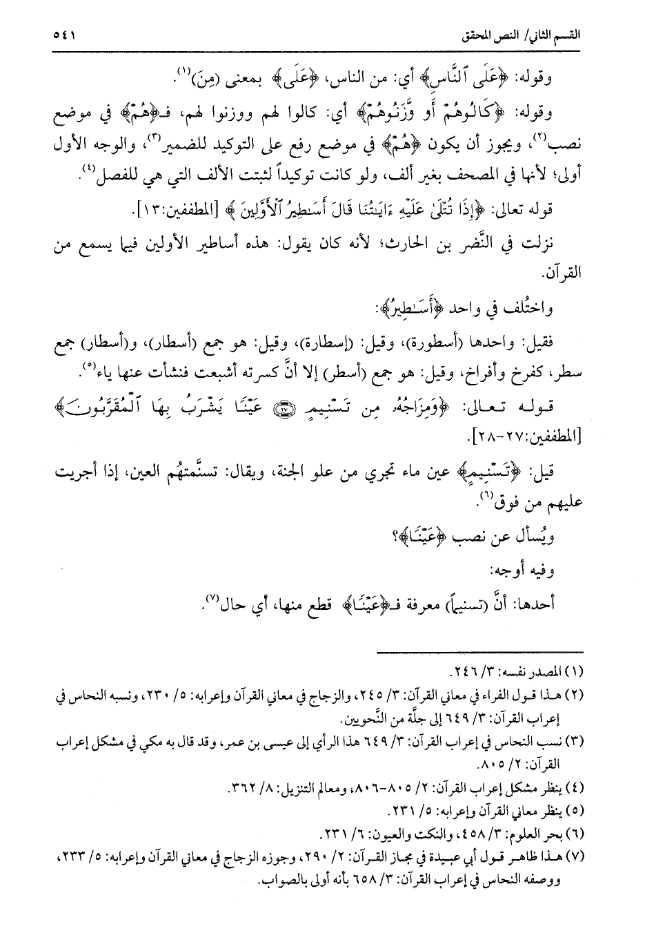 فقيل: واحدها (أسطورة) ، وقيل: (إسطارة) ، وقيل: هو جمع (أسطار) ، و (أسطار) جمع سطر، كفرخ وأفراخ، وقيل: هو جمع (أسطر) إلا أن كسرته أشبعت فنشأت عنها ياء.