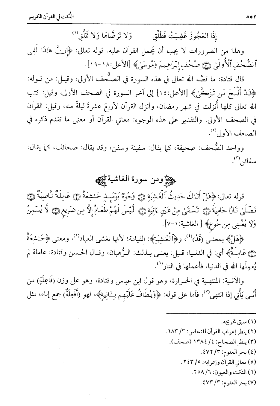 وهذا من الضرورات لا يجب أن يحمل القرآن عليه. قوله تعالى: {إِنَّ هَذَا لَفِي الصُّحُفِ الْأُولَى (18) صُحُفِ إِبْرَاهِيمَ وَمُوسَى} [الأعلى: 18-19] .