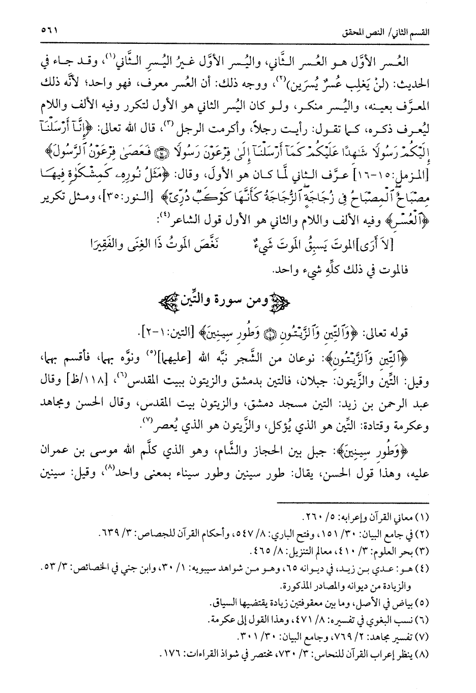 قوله تعالى: {وَالتِّينِ وَالزَّيْتُونِ (1) وَطُورِ سِينِينَ} [التين: 1-2] .