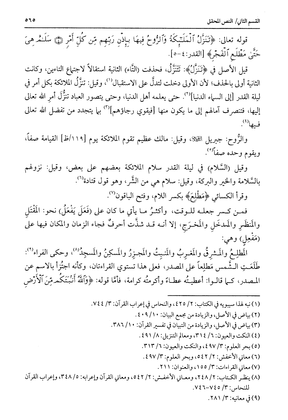 وقيل (السلام) في ليلة القدر سلام الملائكة بعضهم على بعض، وقيل: نزولهم بالسلامة والخير والبركة، وقيل: سلام هي من الشر، وهو قول قتادة.