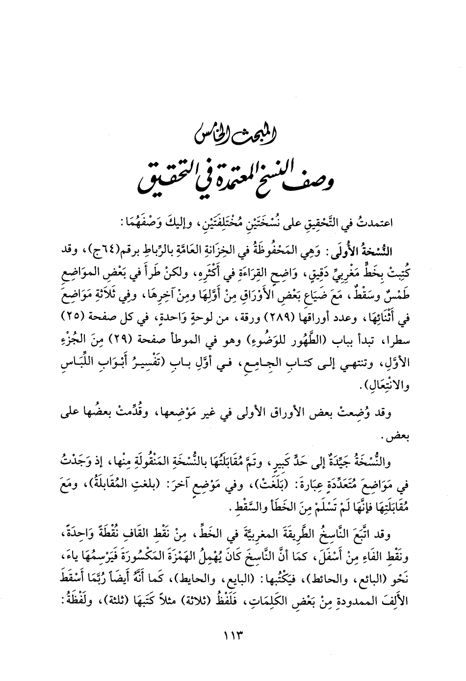 والنُّسْخَةُ جَيِّدَةٌ إلى حَدٍّ كَبيرٍ، وتَمَّ مُقَابَلَتُهَا بالنُّسْخَةِ المَنْقُولَةِ مِنْها، إذ وَجَدْتُ في مَوَاضِعَ مُتَعَدِّدَةٍ عِبَارةَ: (بَلَغَتْ)، وفي مَوْضِعٍ آخرَ: (بلغتِ المُقَابلَةُ)، ومَعَ مُقَابَلَتِهَا فإنَّهَا لَمْ تَسْلَمْ مِنَ الخَطَأ والسَّقْطِ.