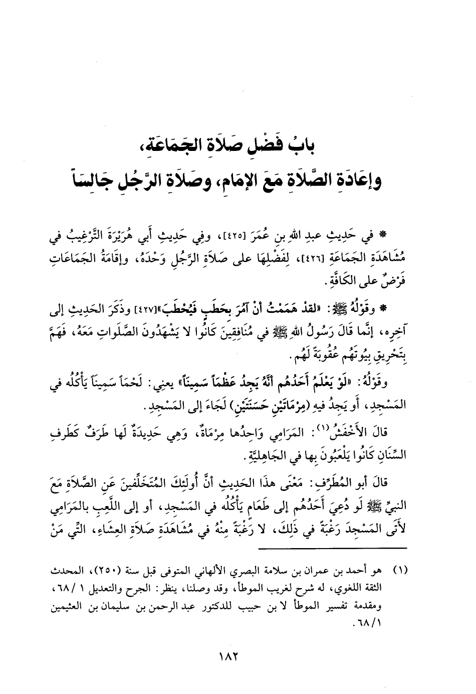بابُ فَضْلِ صَلاَةِ الجَمَاعَةِ، وإعَادَةِ الصَّلَاةِ مَعَ الإمَامِ، وصَلاَةِ الرَّجُلِ جَالِسَاً