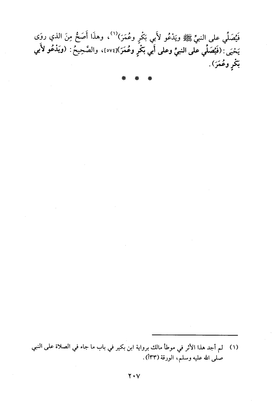 (¬1) لم أجد هذا الأثر في موطأ مالك برواية ابن بكير في باب ما جاء في الصلاة على النبي - صلى الله عليه وسلم -، الورقة (33 أ).