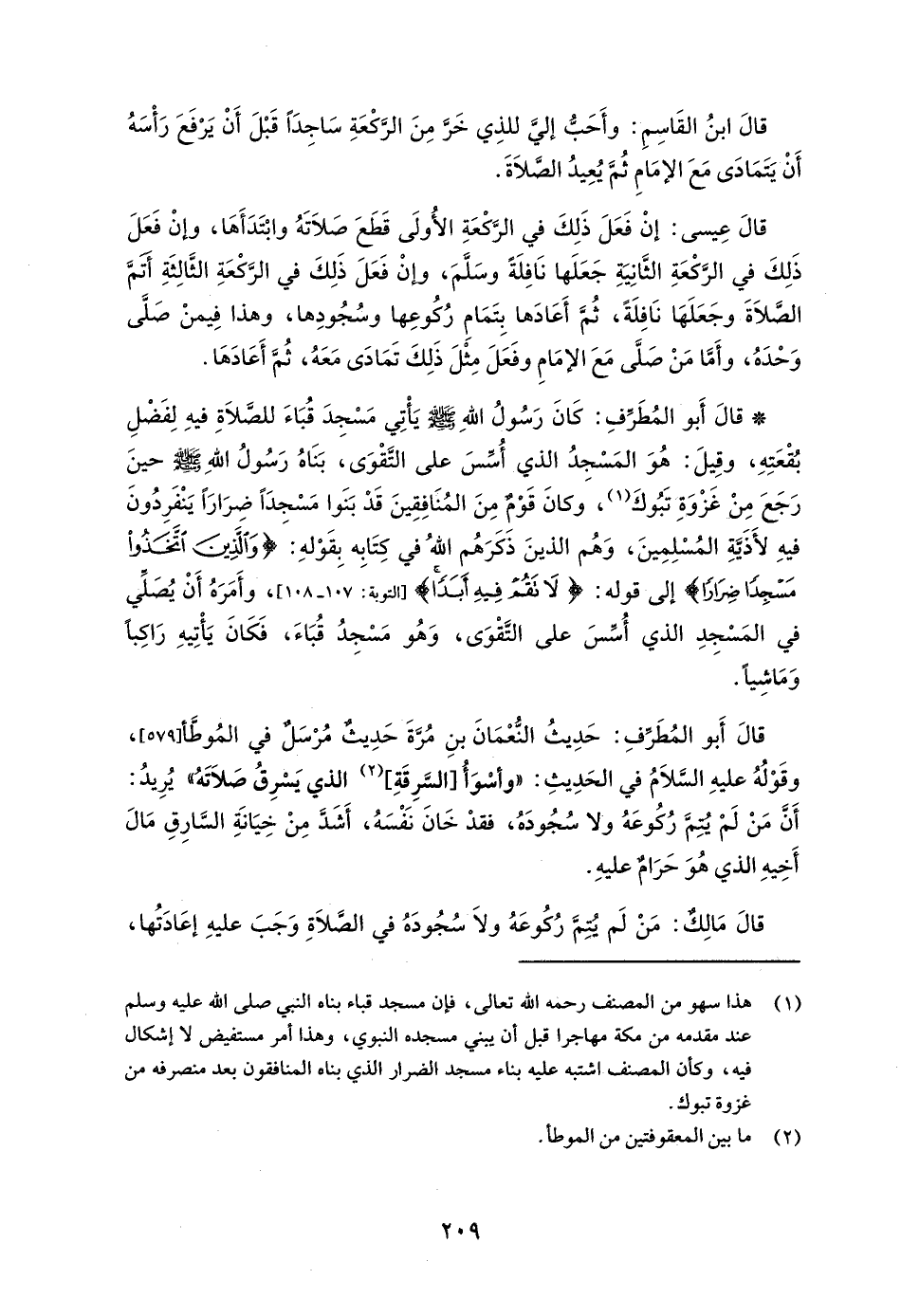 (¬1) هذا سهو من المصنف -رَحِمَهُ اللهُ تَعَالَى-، فإن مسجد قباء بناه النبي - صلى الله عليه وسلم - عند مقدعه من مكة مهاجرا قبل أن يبني مسجده النبوي، وهذا أمر مستفيض لا إشكال فيه، وكان المصنف اشتبه عليه بناء مسجد الضرار الذي بناه المنافقون بحد منصرفه من غزوة تبوك.