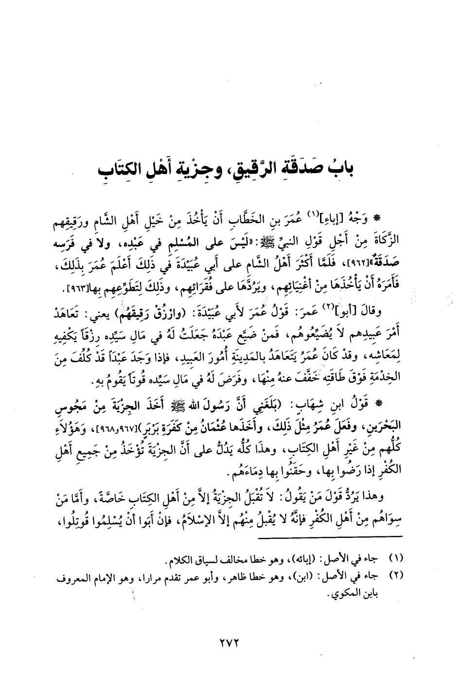 بابُ صَدَقَةِ الرَّقِيقِ، وجِزْيةِ أهْلِ الكِتَابِ