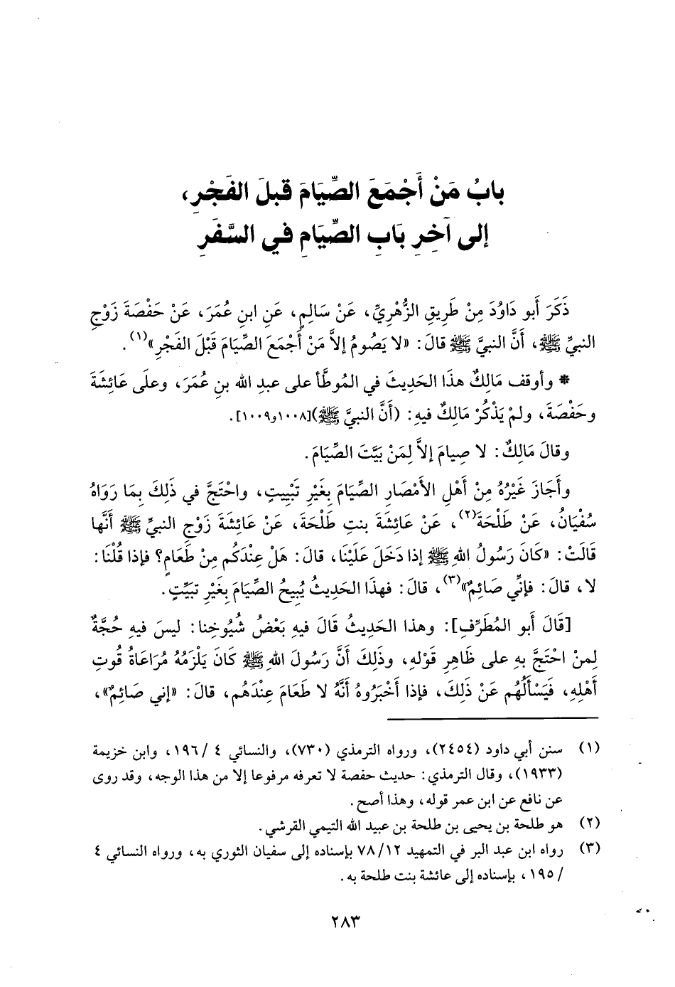 (¬3) رواه ابن عبد البر في التمهيد 12/ 78 بإسناده إلى سفيان الثوري به، ورواه النسائي 4/ 195، بإسناده إلى عائشة بنت طلحة به.
