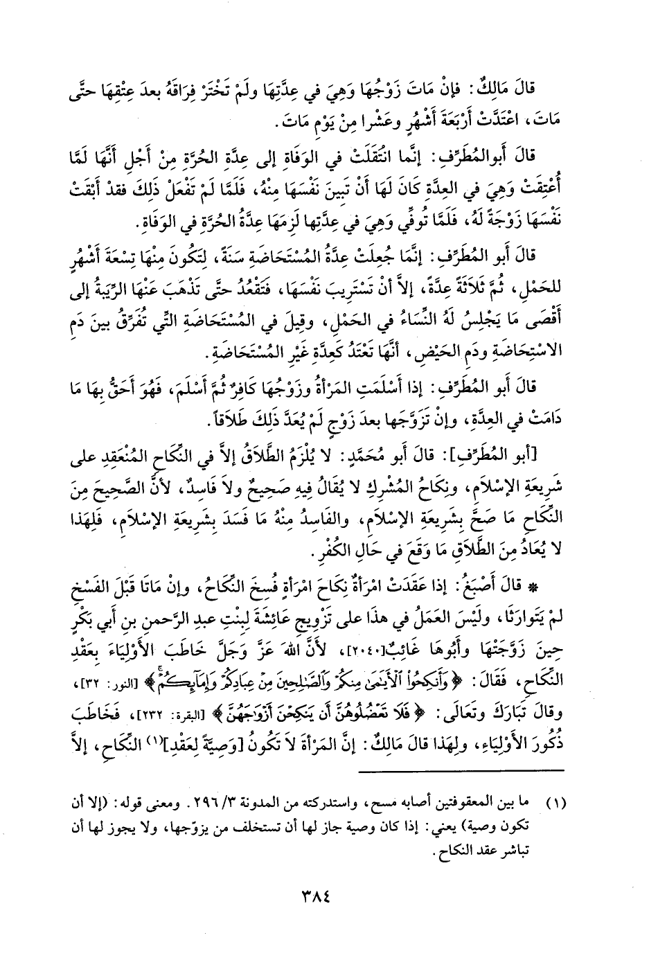 [أبو المُطَرِّفِ]: قالَ أَبو مُحَمَّدٍ: لا يُلْزَمُ الطّلَاقُ إلَّا في النِّكَاحِ المُنْعَقِدِ على شَرِيعَةِ الإسْلاَمِ، ونِكَاحُ المُشْرِكِ لا يُقَالُ فِيهِ صَحِيحٌ ولَا فَاسِدٌ، لأنَّ الصَّحِيحَ مِنَ النِّكَاحِ مَا صَحَّ بِشَرِيعَةِ الإسْلاَمِ، والفَاسِدُ مِنْهُ مَا فَسَدَ بِشَرِيعَةِ الإسْلاَمِ، فَلِهَذا لا يُعَادُ مِنَ الطَّلَاقِ مَا وَقَعَ في حَالِ الكُفْرِ.
