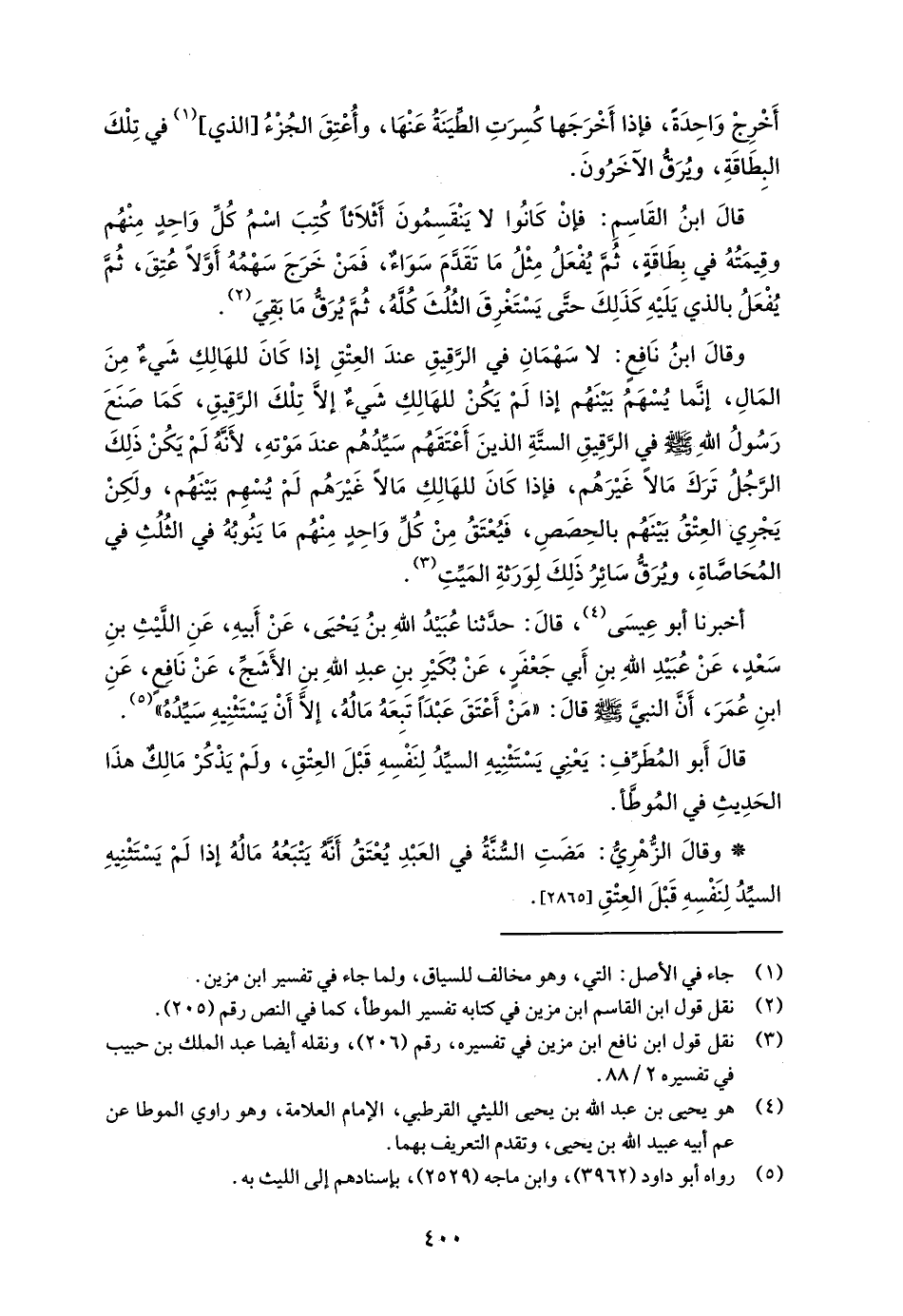 (¬2) نقل قول ابن القاسم ابن مزين في كتابه تفسير الموطأ، كما في النص رقم (205).