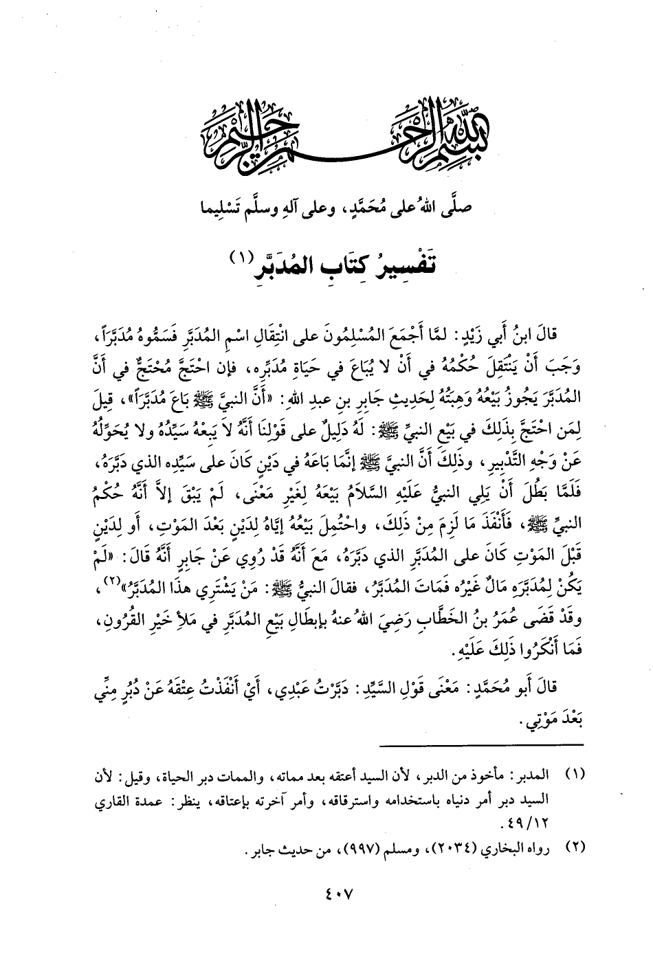 تَفْسِيرُ كِتَابِ المُدَبَّرِ (¬1)