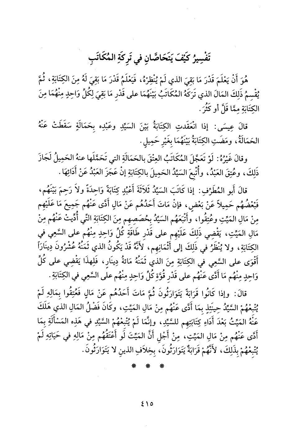 تَفْسِيرُ كَيْفَ يَتَحَاصَّانِ في تَرِكَةِ المُكَاتَبِ