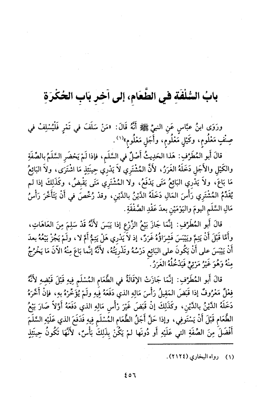 باب السُّلْفَةِ في الطَّعَامِ، إلى آخِرِ بَابِ الحكْرَةِ