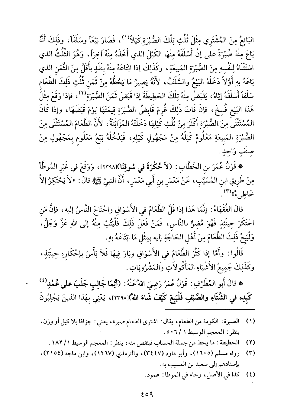 قالَ الفُقَةاءُ: إنَّمَا هذا إذا قَلَّ الطَّعَامُ في الأَسْوَاقِ واحتَاجَ النَّاسُ إليه، فإنَّ مَنِ اختَكَرَ حِينَئذٍ فَهُوَ مُضرٌّ بالنَّاسِ، فَمَنْ فَعَلَ ذَلِكَ فَلْيَتُبْ مِنْهُ إلى اللهِ -عَزَّ وَجَلَّ-، وَلْيَبع ذَلِكَ الطَّعَامَ مِنْ أَهْلِ الحَاجَةِ إليه بِمِثْلِ مَا ابْتَاعَهُ بهِ.