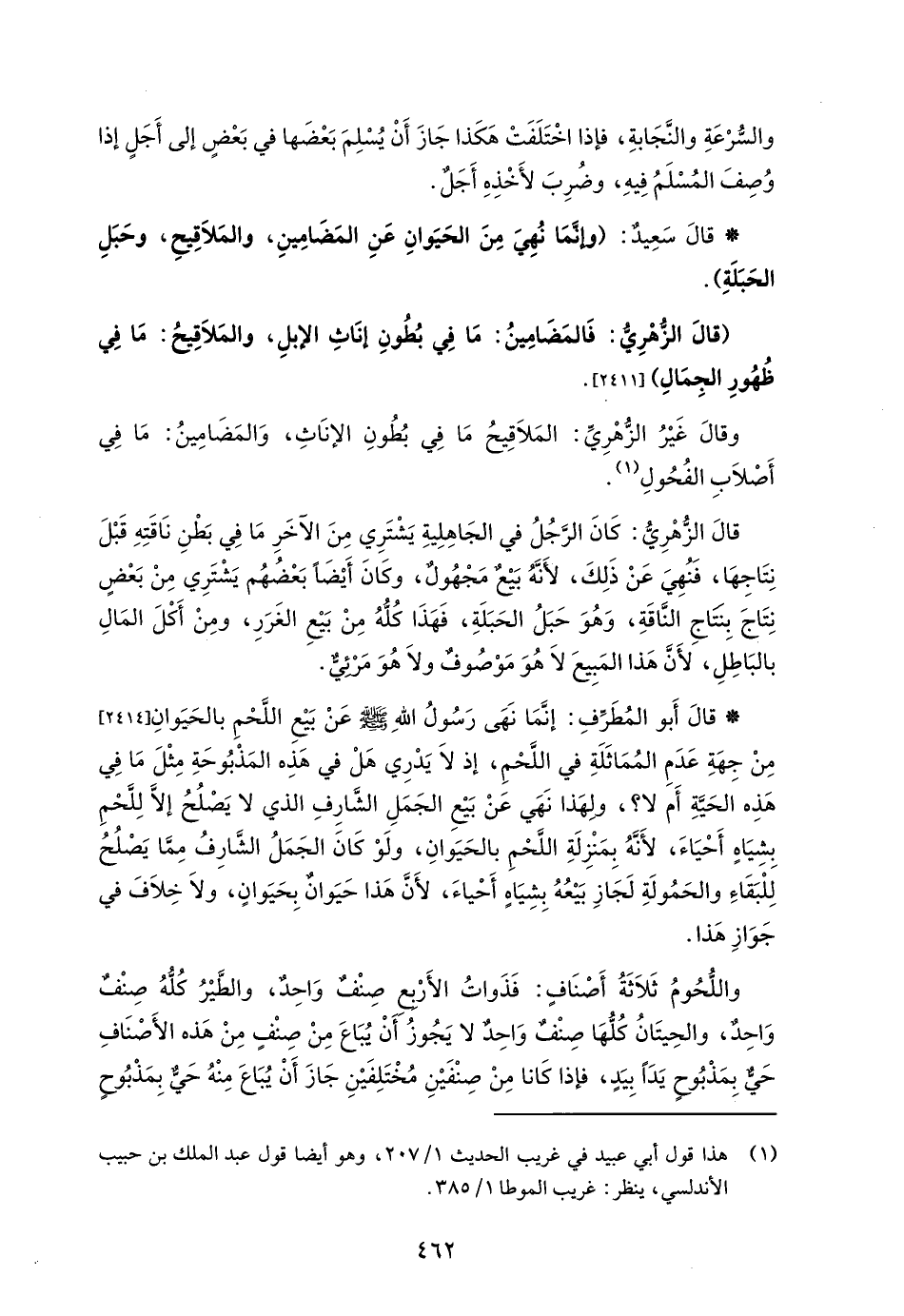 قالَ سَعِيد: (وإنَّمَا نُهِيَ مِنَ الحَيَوانِ عَنِ المَضَامِينِ، والمَلاَقِيحِ، وحَبَلِ الحَبَلَةِ).